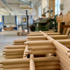 Um höchste Präzision zu gewährleisten, haben wir in der Schreinerei in Mirotice die Produktionslinie Soukup Machinery installiert, welche uns die genaue und effiziente Vorbereitung von Massivholzelementen ermöglicht. Trotz der modernen Technologie bleibt jedoch der Genius Loci der ursprünglichen 100-jährigen Werkstatt erhalten. Interessierte Besucher können unsere handwerkliche Arbeit so in den verschiedenen Produktionsphasen verfolgen.